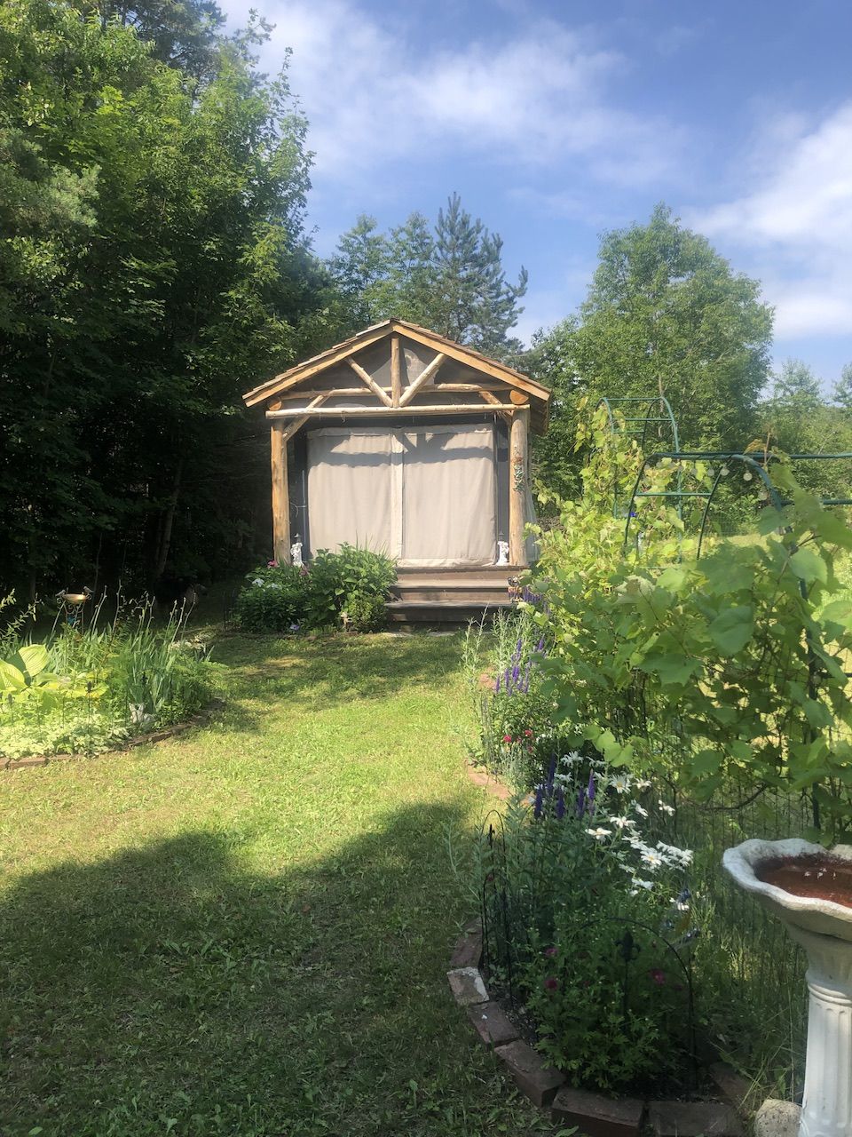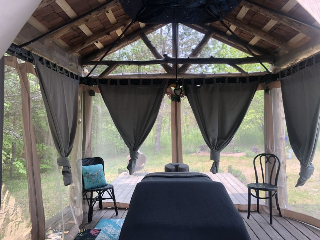During the warm months have a choice of gazebo massage where birds chirp and breeze enters,